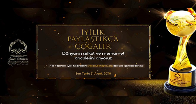 Türkiye Diyanet Vakfı (TDV) tarafından 2019 yılında beşincisi düzenlenecek “Uluslararası İyilik Ödülleri” programı için başta Türkiye olmak üzere dünyanın dört bir yanından iyiliğe öncü kişi ve kurumların yaşanmış iyilik hikâyeleri toplanmaya başladı.