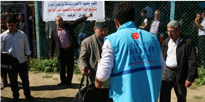 Türkmen Kardeşlik ve Kültür Derneği Başkanı Hişam Avcı, "Türkiye Diyanet Vakfı'ndan, terör örgütü DAEŞ'ten kaçıp, Kerkük kentine sığınan Türkmen ve Arap iç göçmen aileler için yardım talebinde bulunduk. Söz konusu Vakıf talebimizi geri çevirmeyerek bin aileye yetecek gıda yardımı gönderdi. Bu yardımların içerisinde kuru bakliyat, şeker, yağ ve temizlik malzemeleri yer alıyor" ifadelerini kullandı.