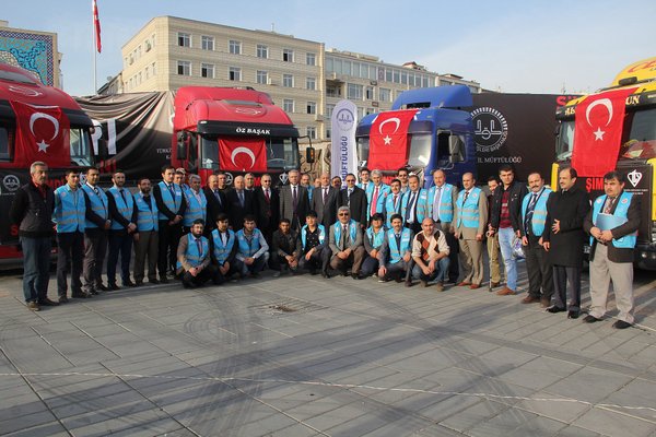 Diyanet İşleri Başkanlığı ve Türkiye Diyanet Vakfı tarafından, Bayırbucak Türkmenleri ve Güneydoğudaki terör mağduru vatandaşlara yönelik geçen hafta başlatılan ve büyük bir destekle büyüyen “Şimdi Yaraları Sarma Zamanı” kampanyası kapsamında Türkiye genelinden toplanan yardımların ilk kısmı 20 tırlık konvoy halinde Diyanet İşleri Başkanımız Prof. Dr. Mehmet Görmez’in katıldığı törenle bölgeye gönderilmişti.