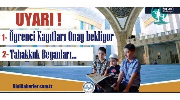 Diğer taraftan Cami ve Kur'an Kurslarındaki resmi öğreticiler haziran ayı tahakkuk beyanını herhangi bir sebepten dolayı doldurmayı ihmal eden öğreticiler, temmuz ayı sonu itibariyle tahakkuk beyanlarını doldurmaları ilaveten konu hakkında daha fazla bilgi almak için mutlaka il veya ilçe müftülükleri ile irtibata geçmeleri gerekiyor.