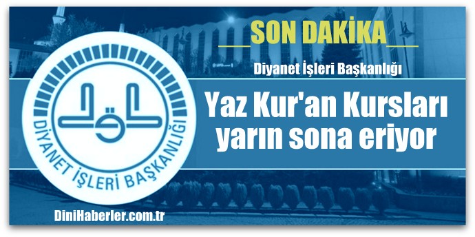 Diyanet İşleri Başkanlığı ani bir karar alarak 26 Ağustos 2016 tarihinde kapanması gereken Yaz Kur'an Kurslarının yarın 12 Ağustos 2016 tarihi itibariyle sonlandırılması kararı aldı.