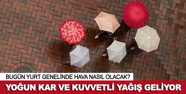 Yapılan son değerlendirmelere göre; Doğu Karadeniz, Doğu Anadolu'nun kuzey ve doğusu, Güneydoğu Anadolu'nun doğu kesimleri ile akşam saatlerinden itibaren Batı Karadeniz'in yağışlı geçeceği tahmin ediliyor. Genellikle yağmur ve sağanak, Batı ve Doğu Karadeniz'in iç kesimleri ile Doğu Anadolu'nun kuzey ve doğusunda karla karışık yağmur ve kar şeklinde görülecek olan yağışların; Rize, Artvin kıyıları, Şırnak, Zonguldak, Bartın, Sinop ve Kastamonu kıyı ilçelerinde kuvvetli yağmur ve sağanak, Rize ve Artvin'in iç ve yüksek kesimleri, Erzurum, Kars, Ardahan, Ağrı, Muş, Bitlis ve Hakkari çevrelerinde yoğun kar şeklinde olması bekleniyor.