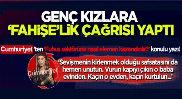 Cumhuriyet gazetesinin onayından geçen ve genç kızlara adeta ‘fuhşun’ pazarlamasını yapan Mine Söğüt’ün kaleminden çıkan yazı için yetkilileri göreve çağırıyoruz!