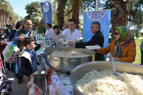 Sinop’ta Kutlu Doğum Haftası etkinlikleri, düzenlenen çeşitli programlarla devam ediyor. Etkinlikler kapsamında Sinop İl Müftülüğü ve Türkiye Diyanet Vakfı Sinop Şubesince Cuma Namazı çıkışı Alaaddin Camii bahçesinde ve Aşıklar Parkı’nda Sinoplulara etli pilav ikramında bulunuldu. Kutlu Doğum Aşı dağıtımı İl Müftüsü Mustafa Erkan’ın yaptığı dua ile başladı. Müftülük çalışanlarının görev aldığı pilav dağıtımı sırasında renkli görüntüler yaşandı. Alaaddin Camii bahçesinde ve Parkta oluşturulan standların üzerine yerleştirilen kazanların önünde uzun kuyruk oluşurken, her iki etkinlikte yaklaşık üçbin kişiye Kutlu Doğum Aşı ikramında bulunuldu. Pilav dağıtımı için 300 kilo pirinç ve 200 kilogram et kullanıldığı belirtildi.
