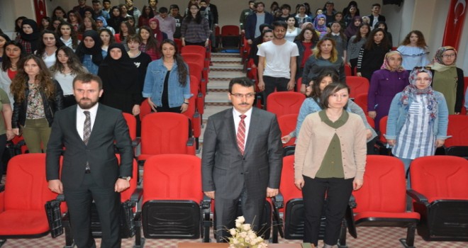 Saygı Duruşu ve İstiklal Marşının okunmasıyla başlayan programda konuşan Sinop İl Müftüsü Ali Hayri Çelik “Ecdadımız bir çok alanda başarı yakalamışlar ve bu başarılarının devamı için var güçleri ile çalışmışlardır.” diyen İl Müftüsü Çelik sözlerine şöyle devam etti. “Bizlerin, ecdadımız ile aramızda bulunan bu kuvvetli bağı zayıflatmak, onların başarılı çalışmalarından bi haber bırakmak ve bizlerin başarılı olmamamız için gayret göstermişler ve bunu da üç temel üzerine oturtarak uygulamaya koymuşlardır. Bunlar aile değerleri, Eğitim sistemi, hayata yön veren rol modellerin itibarsızlaştırılması ile başlamışlardır. İnsanları maddi ve manevi değerlerinden yoksun bırakırsanız insanların değer ölçüleri, hayata bakış açıları değişir. O yüzdendir ki bizler manevi değerlerimizin farkında olarak gereği gibi hayatımızı idame ettirerek bizlerin bağını zayıflatmak için kurmuş oldukları o tuzaklardan kendimizi neslimizi ve geleceğimizi uzaklaştırmış oluruz. Siz gençler kendilerinizi iyi yetiştiriniz ki sizden sonrakilere de o şekilde bilinçli bireyleri yetiştirebilesiniz.” dedi.