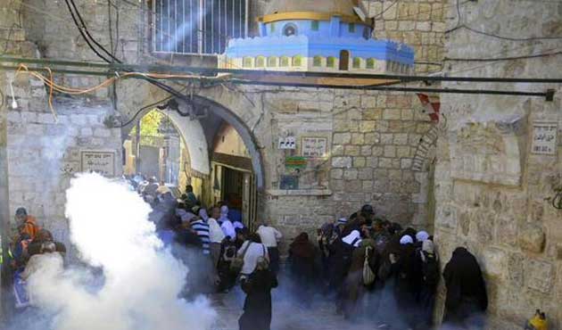 İsrail işgal güçleri salı sabahı da postallarıyla Mescid-i Aksa'nın etrafı camekanla çevrili minberinin yakınına kadar girmiş ve çatısına çıkmıştı.