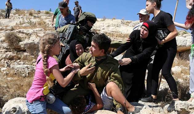 Filistin Batı Şeria'da, Nebi Salih bölgesinde Yahudi yerleşim birimi inşası ve ayrım duvarını bir grup protesto etti. İsrail askeri, gruptan Muhammed Tamimi'yi taşın arasına sıkıştırdı. Bir kolu alçıda olan çocuğun, önce kafasını taşa dayadı, sonra diğer kolunu kıvırdı, sürükledi ve onu gözaltına almaya çalıştı.