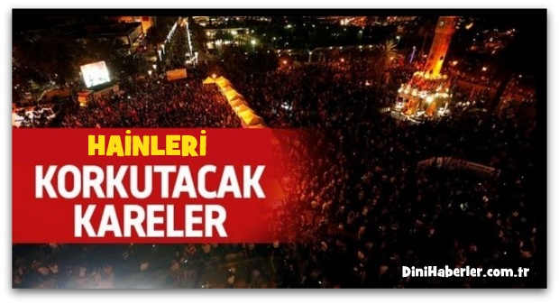 Konak Meydanı'ndaki saat kulesi etrafında Türkiye bayrakları ve Cumhurbaşkanı Recep Tayyip Erdoğan'ın posterleriyle toplanan binlerce İzmirli, darbe girişimine tepki gösterdi.