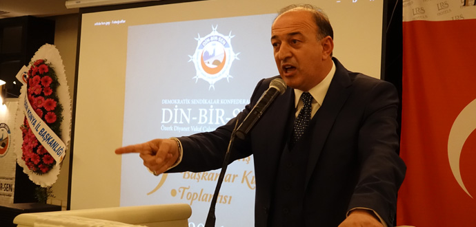Diyanet camiasının sorunlarının çözümünde gelin birlikte hareket edelim. Kibre kapılmayalım. Amaç üzüm yemekse zeytin dalı uzatıyorum. Bu süreçte projeler üretelim. Bunları Diyanet İşleri Başkanlığı’na götürelim ve sorunlarımızın çözümünü birlikte takip edelim. Din görevlilerinin hakkını ve hukukunu savunmak bütün sendikaların görevidir. Asli görevimizi unutarak sadece üye sayısını artırmak için çaba içine girecek olursak o zaman din görevlilerinin sorunlarını göremeyiz. Haksızlıklara, hukuksuzluklara, yalana, iftiraya karşı birlikte ortak hareket edelim. Yalanlarla Diyanet camiasının sömürülmesine izin vermeyelim. Üyelerimize baskı yapılmasını, istifaya zorlanmasına, haksız tayin ve soruşturmalara ve uygulanan mobbing’e karşı birlikte hareket edelim. Din görevlilerine hizmet etmeyen, başka amaç peşinde koşanları ifşa edelim. Bunlara karşı birlikte mücadele edelim. Kendi camiamızda ‘kirli sendika oyunlarına’ izin vermeyelim. Kapımızın önünü temizleyerek işe koyulalım. O zaman camiamız tertemiz olur.”