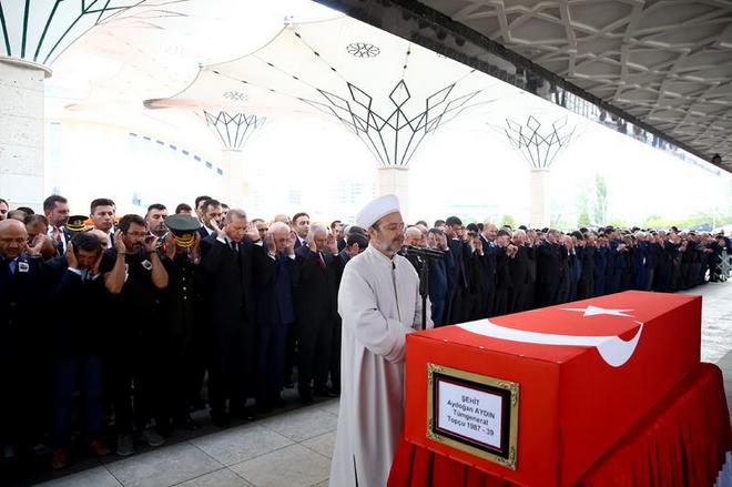 Diyanet İşleri Başkanı Prof. Dr. Mehmet Görmez’in kıldırdığı cenaze namazında, Cumhurbaşkanı Recep Tayyip Erdoğan, TBMM Başkanı İsmail Kahraman, Başbakan Binali Yıldırım, CHP Genel Başkanı Kemal Kılıçdaroğlu, MHP Genel Başkanı Devlet Bahçeli, şehidin ailesi ve yakınlarıyla çok sayıda vatandaş saf tuttu.