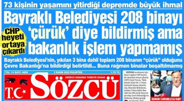 Mevcut haliyle konutların oturma ve yıkım izinlerini belediyeler düzenlerken Sözcü gazetesinin Bayraklı Belediyesinin sorumluluğunu hatırlatmak yerine bakanlığı hedef alması Sözcü’nün art niyetini ortaya çıkarmakta.