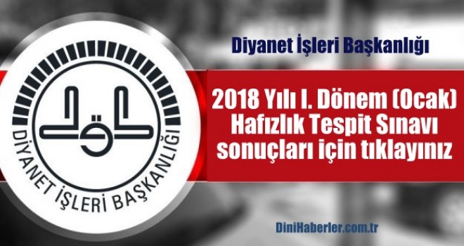 2018 Yılı I. Dönem (Ocak) Hafızlık Tespit Sınavı sonuçları için tıklayınız.
