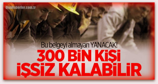 Verilere göre Türkiye'de halen kanunda sayılan tehlikeli ve çok tehlikeli işlerde çalışan 300 bin kişinin mesleki yeterlilik belgesi bulunmuyor. 26 Mayıs'tan itibaren belgesi olmayan işçiyi çalıştıran işveren ve işveren vekillerine Çalışma ve İş Kurumu İl Müdürlükleri tarafından her bir çalışan için 500 TL ceza verilecek. İnşaat işçisi, ahşap kalıpçısı, ısı yalıtımcısı, betoncu, çelik kaynakçısı, direnç kaynak ayarcısı, otomotiv makinecisi, doğalgaz saha elemanları, bakım operatörleri, seramik karo kaplamacısı, ses yalıtımcısı, duvarcı, sıvacı, tünel kalıpçısı ve yangın yalıtımcısı gibi işler, tehlikeli ve çok tehlikeli sınıfta sayılarak 2015 Nisan ayında bu kapsama alınmış, çalışanlarla iş yerlerine 26 Mayıs'a kadar belge için süre tanınmıştı. Kaynak: Haber Vaktim