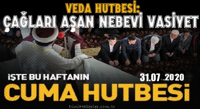 Diyanet İşleri Başkanlığı tarafından hazırlanan "...VEDA HUTBESİ: ÇAĞLARI AŞAN NEBEVİ VASİYET ...” isimli 31 Temmuz 2020 tarihli Cuma hutbesinin tam metnini sitemizden okuyabilir, dilerseniz bilgisayarınıza indirebilirsiniz..
