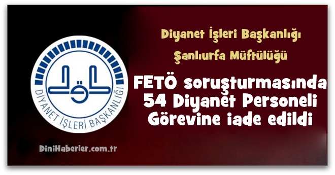 15 Temmuz hain darbe girişiminin ardından türkiye genelinde, açığa almalar ve görevden uzaklaştırmaların yanı sıra göreve dönmeler de başladı. Şanlıurfa da 54 personel görevine iade edildi. Açıklamalarda bulunan Şanlıurfa İl Müftüsü İhsan Açık şehir kapsamında 160 Müftülük personeline ile ilgili soruşturma açıldığını söyledi. 160 personelin 130’unun açığa alındığını belirten Açık 28 kişinin görevden ihraç edildiğini 54 personelin ise görevlerine iade edildiğini belirtti.