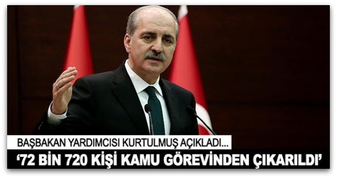 DİYANET HABER-Başbakan Yardımcısı Numan Kurtulmuş, FETÖ ile mücadele kapsamında bugüne kadar 72 bin 720 kişinin kamu görevinden çıkarıldığını bildirdi.