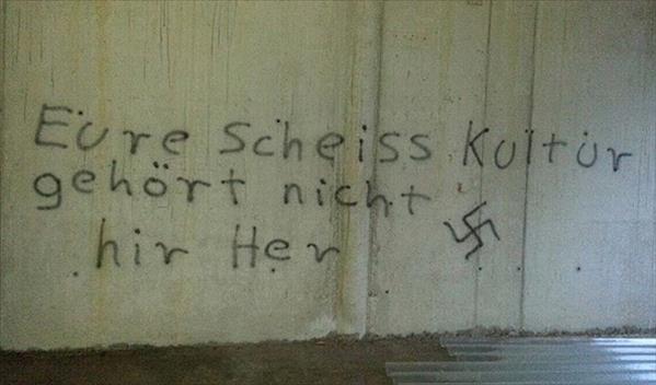Aşırı sağcı kişi ya da kişilerin, 2012'de temeli atılan inşaat halindeki caminin duvarlarına gamalı haç çizdikleri ve ''Pis Müslümanlar'', ''Almanya Almanların vatanıdır'', ''Pis kültürünüz buraya ait değil'' diye yazdıkları belirtildi.