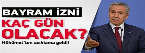 Ramazan Bayramı tatiliyle ilgili beklentiler olduğuna değinen Arınç, bayramın 28 Temmuz'da başlayacağını ve 29-30'unda devam edeceğini hatırlattı. Arınç, "Arkada kalan perşembe ve cuma günlerinin idari izinli sayılıp sayılmayacakları konusunda bir beklenti oluşmuştu. Hayır, sayılmayacak, bayram, 30'u akşamı bitmiş olacak" ifadesini kullandı.