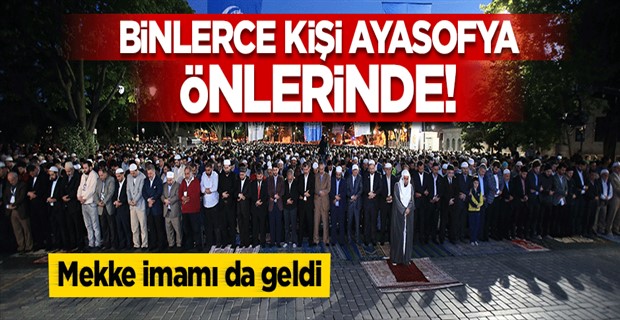 Mekke İmamı Murat Mustafa El Hasan da, meydanda toplanan kalabalığa sabah namazı kıldırdı. Meydanda toplanan erkeklerin hemen yan tarafında ayrılan bölümde de kadınlar namaz kılmak için saf oluşturdu. Kalabalık daha sonra Ayasofya'nın namaz ibadetine açılması için dua etti.