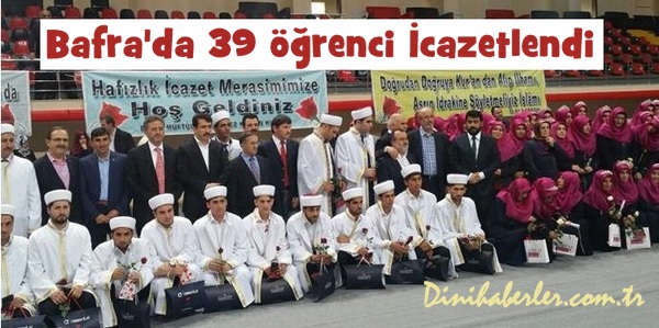 Bafra müftülüğü tarafından, hıfzını tamamlayan 39 öğrenci için düzenlenen“Kur’an ziyafeti ve İcazet Merasimi “programı Bafra Yeni Kapalı Spor salonunda halkın yoğun katılımıyla icra edildi.