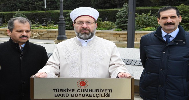 Diyanet İşleri Başkanı Prof. Dr. Ali Erbaş, Bakü'deki şehitlikleri ziyaret ederek şehitler için dua etti.