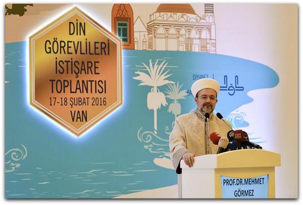 Diyanet İşleri Başkanı Prof. Dr. Mehmet Görmez, Güneydoğu’da görev yapan din görevlileriyle buluşmasını sürdürüyor. ‘Din Görevlileri İstişare Toplantısı’ için önceki hafta Mardin’e giderek iki gün süren programa katılan Diyanet İşleri Başkanı Görmez, toplantının ikinci ayağının gerçekleştiği Van’da bölgede görev yapan Din görevlileriyle bir araya geldi.