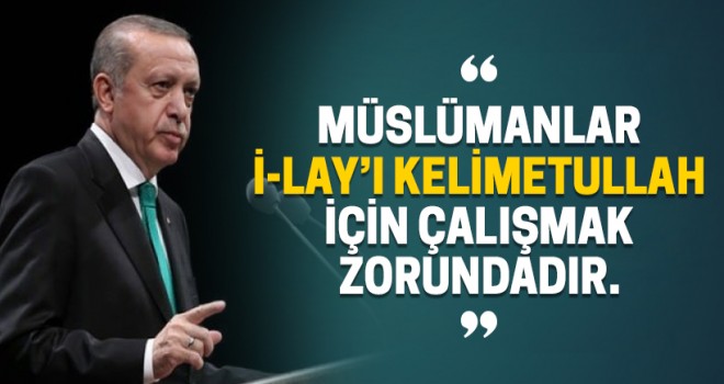 Erdoğan, Müslümanların emrolundukları gibi olursa Allah'ın inayetiyle önlerinde durabilecek hiçbir fani güç olmadığını belirterek, kalpleri, hedefleri, inançları, umut ve sevdaları bir olan topluluğun aşamayacağı bir engel bulunmadığını kaydetti.