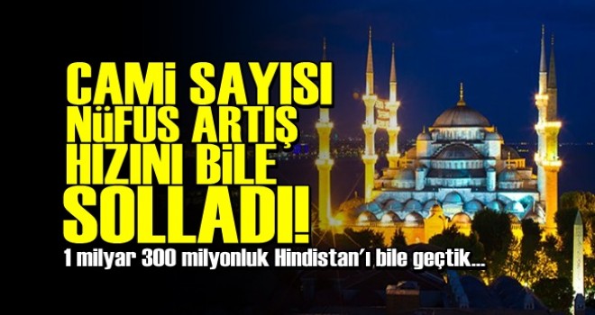 Türkiye’deki cami sayısı, nüfus artış hızının da üzerinde artarak 90 bine ulaştı. Camilerin artışı en fazla Müslüman nüfusa sahip ülkelerden olan Hindistan’daki cami sayısının nüfusa oranının da üzerinde gerçekleşti