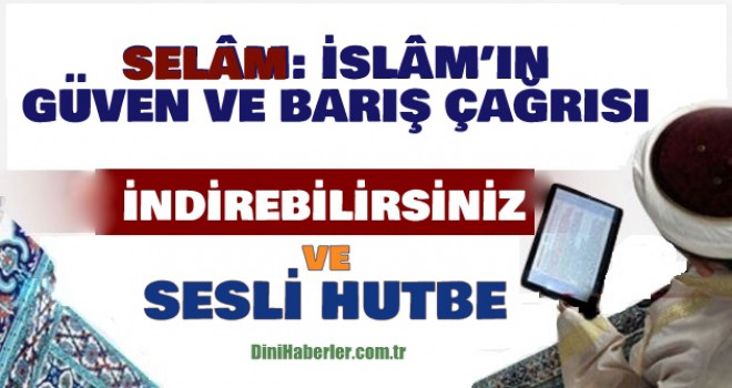 DİYANET HABER-Haftanın Hutbesi, Türkiye Geneli... Diyanet İşleri Başkanlığı tarafından hazırlanan “SELÂM: İSLÂM’IN GÜVEN VE BARIŞ ÇAĞRISI” isimli hutbe 07.12.2018 Cuma günü Türkiye geneli bütün camilerde okunacaktır. Diyanet Cuma hutbesinin tam metnini sitemizden okuyabilir, dilerseniz bilgisayarınıza indirebilirsiniz..