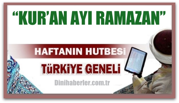 Türkiye Genel... Diyanet İşleri Başkanlığı tarafından hazırlanan “KUR’AN AYI RAMAZAN ” isimli hutbe 10.06.2016 Cuma günü Türkiye geneli bütün camilerde okunacaktır. Diyanet Cuma hutbesinin tam metnini sitemizden okuyabilir, dilerseniz bilgisayarınıza indirebilirsiniz..