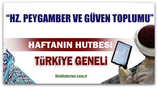 DİYANET HABER-Haftanın Hutbesi, Türkiye Geneli... Diyanet İşleri Başkanlığı tarafından hazırlanan “.HZ. PEYGAMBER VE GÜVEN TOPLUMU ..” isimli hutbe 14.04.2017 Cuma günü Türkiye geneli bütün camilerde okunacaktır. Diyanet Cuma hutbesinin tam metnini sitemizden okuyabilir, dilerseniz bilgisayarınıza indirebilirsiniz..