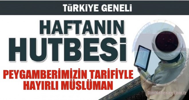 DİYANET HABER-Haftanın Hutbesi, Türkiye Geneli... Diyanet İşleri Başkanlığı tarafından hazırlanan 'PEYGAMBERİMİZİN TARİFİYLEHAYIRLI MÜSLÜMAN' isimli hutbe 17.05.2019 Cuma günü Türkiye geneli bütün camilerde okunacaktır. Diyanet Cuma hutbesinin tam metnini sitemizden okuyabilir, dilerseniz bilgisayarınıza indirebilirsiniz..