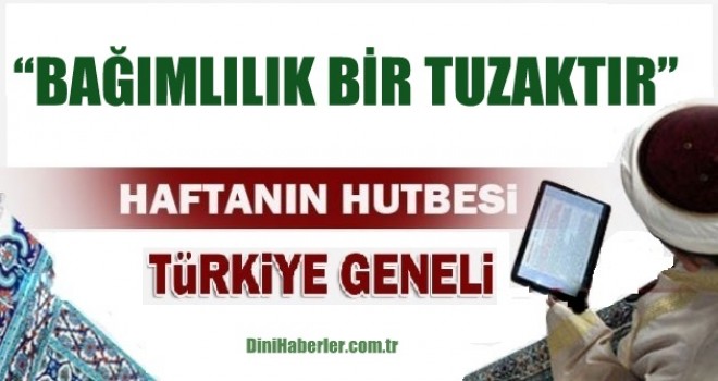 DİYANET HABER-Haftanın Hutbesi, Türkiye Geneli... Diyanet İşleri Başkanlığı tarafından hazırlanan “...BAĞIMLILIK BİR TUZAKTIR . ” isimli hutbe 23.02.2018 Cuma günü Türkiye geneli bütün camilerde okunacaktır. Diyanet Cuma hutbesinin tam metnini sitemizden okuyabilir, dilerseniz bilgisayarınıza indirebilirsiniz..