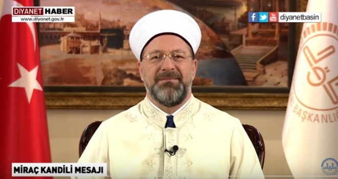 Diyanet İşleri Başkanı Prof. Dr. Ali Erbaş yayınladığı Miraç Kandili mesajında “Bu mukaddes gecenin, Mescid-i Aksa bilincini, özlemini ve gayretini artırarak, miracın mabedinin selametine, işgal ve zulmün bertaraf edilmesine vesile olmasını temenni ediyorum” dedi.