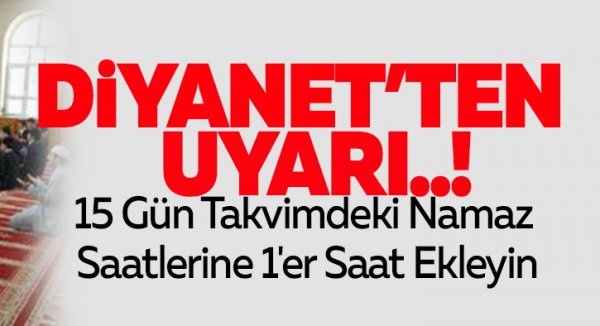 Saatlerin geri alınmasının bir hafta ertelenmesi sonrasında Diyanet, takvimlerdeki namaz vakitlerine 1'er saat eklenmesi uyarısı yaptı.