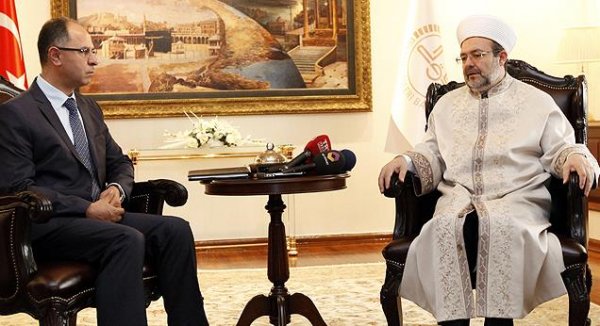 Diyanet İşleri Başkanı Prof. Dr. Mehmet Görmez, Filistin'in Ankara Büyükelçisi Dr. Fead Mustafa'yı kabul etti.