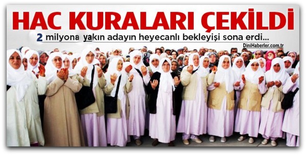 Dinihaberler.com.tr: Hac farizasını yerine getirmek üzere kutsal topraklara gidecek vatandaşlar, bugün çekilecek kura ile belirlenecek. Bu yılki hac için 1 milyon 760 bin 751 kişinin katılacağı kura, saat 11.00'de Diyanet İşleri Başkanlığında, bilgisayar ortamında, basın ve kamuoyuna açık yapılacak. Kura sonuçlarına "http://hac.diyanet.gov.tr" adresinden ulaşabilecek. Kura sonuçları saat 21.00 itibari ile "http://hac.diyanet.gov.tr" adresinden öğrenilebilecek.