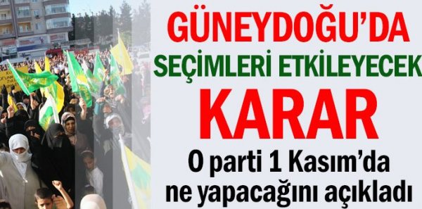 Hür Dava Partisi (HÜDA-PAR), 1 Kasım’da yapılacak seçimlere girmeme kararı aldı. Siyasi araştırmacılar bölgede yıllardır PKK-HDP çizgisi ile çatışma halinde olan HÜDA PAR seçmeninin siyasi tercihini önemli ölçüde AK Parti’ye oy verme ve sandığa gitmeme şeklinde kullanacağı belirtiliyor.