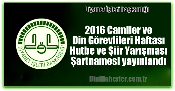 2016 yılı Camiler ve Din Görevlileri Haftası Münasebetiyle düzenlenecek HUTBE ve ŞİİR yazma yarışmaları ile ilgili şartname yayınlandı.