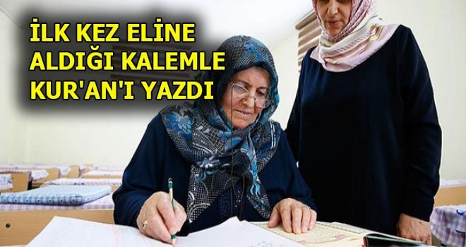 Okuma yazma bilmeyen ve katıldığı Kur'an kursunda eline ilk kez kalem alan 60 yaşındaki Ayşe Şimşek, 604 sayfalık Kur\'an-ı Kerim\'i baştan sona yazma becerisi gösteren tek kursiyer oldu.