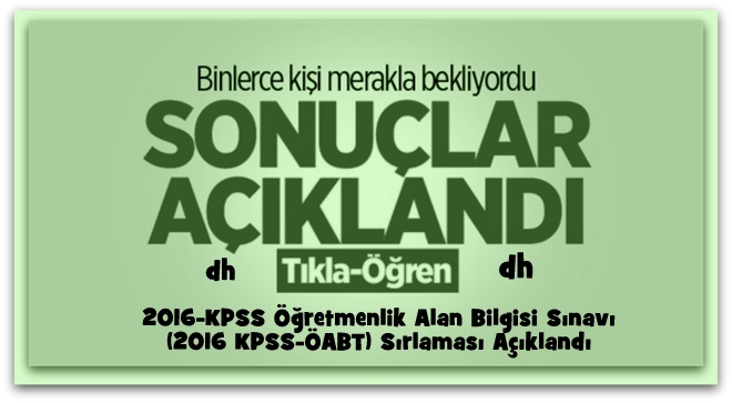 ÖSYM tarafından, 2016-KPSS Öğretmenlik Alan Bilgisi Sınavına (2016 KPSS-ÖABT) katılan adayların, sınav sonuçları açıklandı.