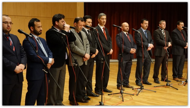 Dursun Şahin’in okuduğu Çanakkale Şehitleri kasidesi gönüllere dokundu, aynı güzellikle ezan okuma birincisi Hafız Habib İspirli de ona sala eşliğinde programa renk kattılar.