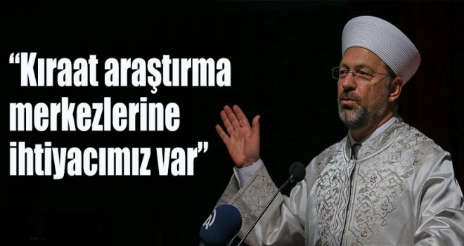 Diyanet İşleri Başkanı Prof. Dr. Erbaş, 'Kıraat alanının temel metinlerinin derinlemesine incelenmesini esas alan kıraat araştırmalarının yapıldığı araştırma merkezlerine ihtiyacımızın olduğu, gün geçtikçe kendini daha da hissettirmektedir.' dedi.