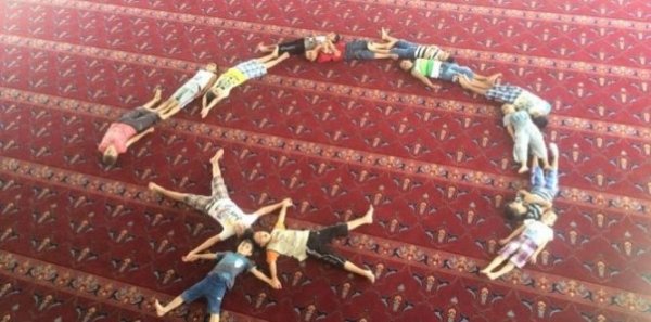 Çanakkale’nin Kepez Beldesi’nde bulunan Bademlik Camisi’nde yaz aylarında devam eden Kur’an kurslarına katılan minik öğrenciler, Muş’un Malazgirt ilçesinde uğradığı silahlı saldırı sonucu şehit düşen Malazgirt İlçe Jandarma Komutanı Binbaşı Arslan Kulaksız için kendi vücutlarından Türk Bayrağı’nın simgesi olan ay yıldız yaptı.