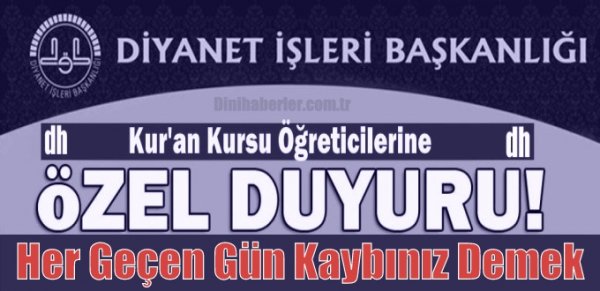 Kur'an Kursu Öğreticilerine Özel Duyuru