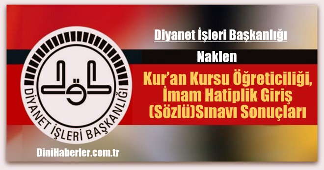 2015 Yılı Kurum İçi Naklen (Kur'an Kursu Öğreticiliği, İmam Hatiplik) Giriş Sınavı'na (Sözlü) katılan adaylar, sınav sonuçlarınıhttps://dibbys.diyanet.gov.tr adresinden öğrenebileceklerdir.