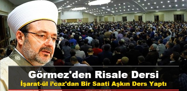 DİB Prof. Dr. Mehmet görmez 3.000 i aşkın kişinin bulunduğu Nazım Gökçek Külliyesinde bir sohbet gerçekleştirmiş, bu sohbette Risale-i Nur ile ilk olarak nasıl tanıştığını, yine Nazım Gökçek Ağabey ile ilk olarak nerede ve nasıl tanıdığını anlattıktan sonra İşarat-ül i’caz dan bir saati aşkın bir ders yapmıştır.