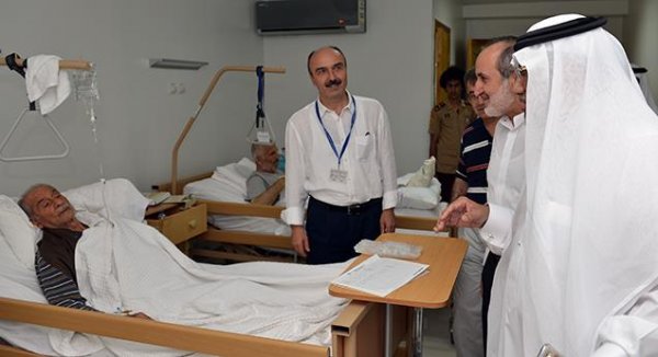 Mekke hastanesinde tedavi gören hastaları ziyaret eden Başkan El Barr, Mekke Hastanesinin polikliniklerini gezerek yetkililerden bilgi aldı.