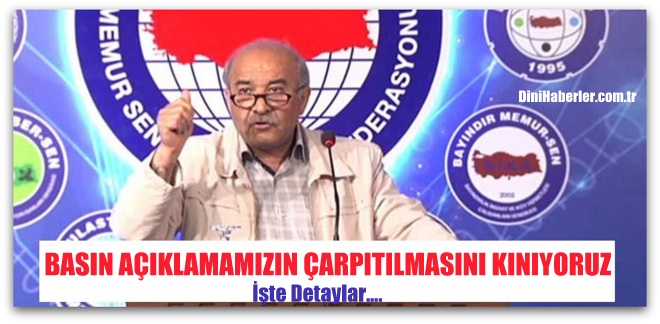 Memur-Sen Ankara İl Başkanı Mustafa KIR, Basında çıkan ve sitemizde linki verilerek alıntı olarak yayınlanan "Memur Sen FETÖCÜ'lere Sahip Çıktı. AFFEDİLSİNLER" başlıklı yazının aslını yansıtmadığını dile getirdiği metni olduğu gibi yayınlıyoruz.