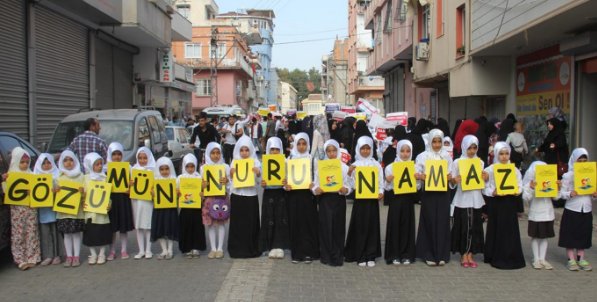 Sertifika töreni öncesi tarihi Yağ Camii’nde öğle namazı kılan çocuklar, daha sonra etkinliğin yapılacağı Ramazanoğlu Kültür Merkezi’ne kadar ellerinde “Gözümün Nuru Namaz” yazılı pankartla yürüdü. “Namaz Dinin Direğidir, Gözümün Nuru Namaz” şeklinde slogan atan çocuklara, yoldan geçenlerin de tebessüm ve alkışlarla destek olması dikkat çekti.